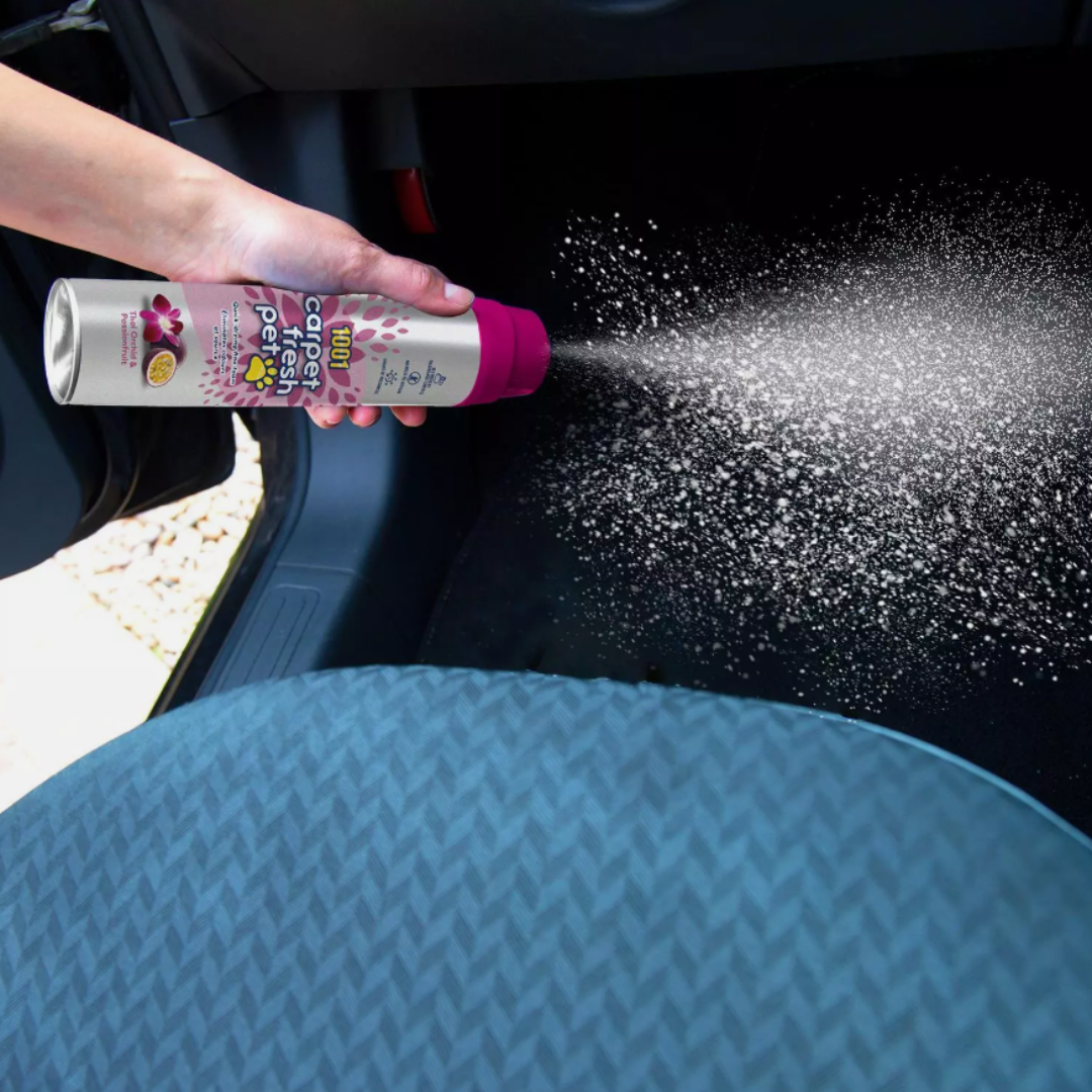 1001 Carpet Fresh nøytraliserer effektivt lukter fra kjæledyr, røyk og matlaging.