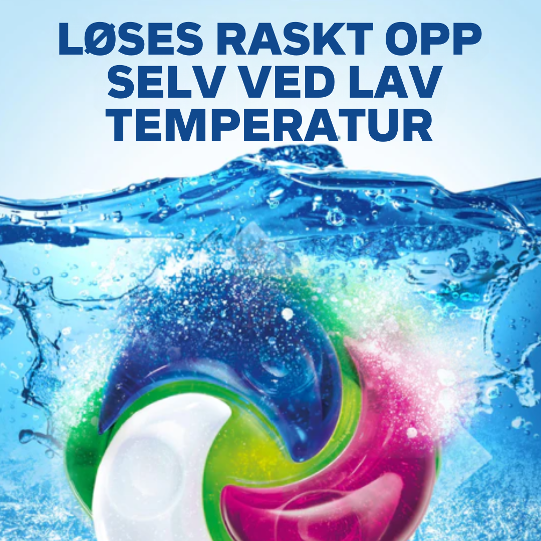 Hver kapsel inneholder dobbelt så mye vaskekraft som en vanlig Ariel POD – nok til å takle selv de mest krevende flekkene og luktene i én vask.