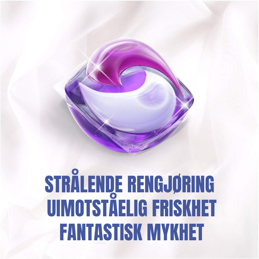 Bold 2‑in‑1 Lavender & Camomile PODS er konsentrerte vaskekapsler som kombinerer effektiv rengjøring og mykgjørende effekt i én enkel vask. De er utviklet for å gi grundig flekkfjerning, beskyttelse av tekstiler og en behagelig, beroligende duft av lavendel og kamille – også ved vask på lave temperaturer.