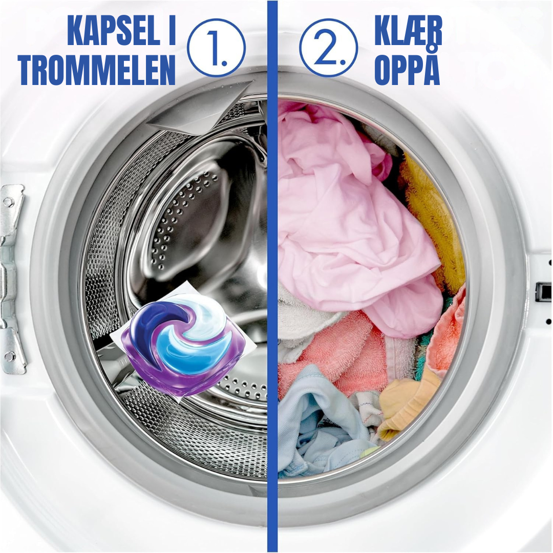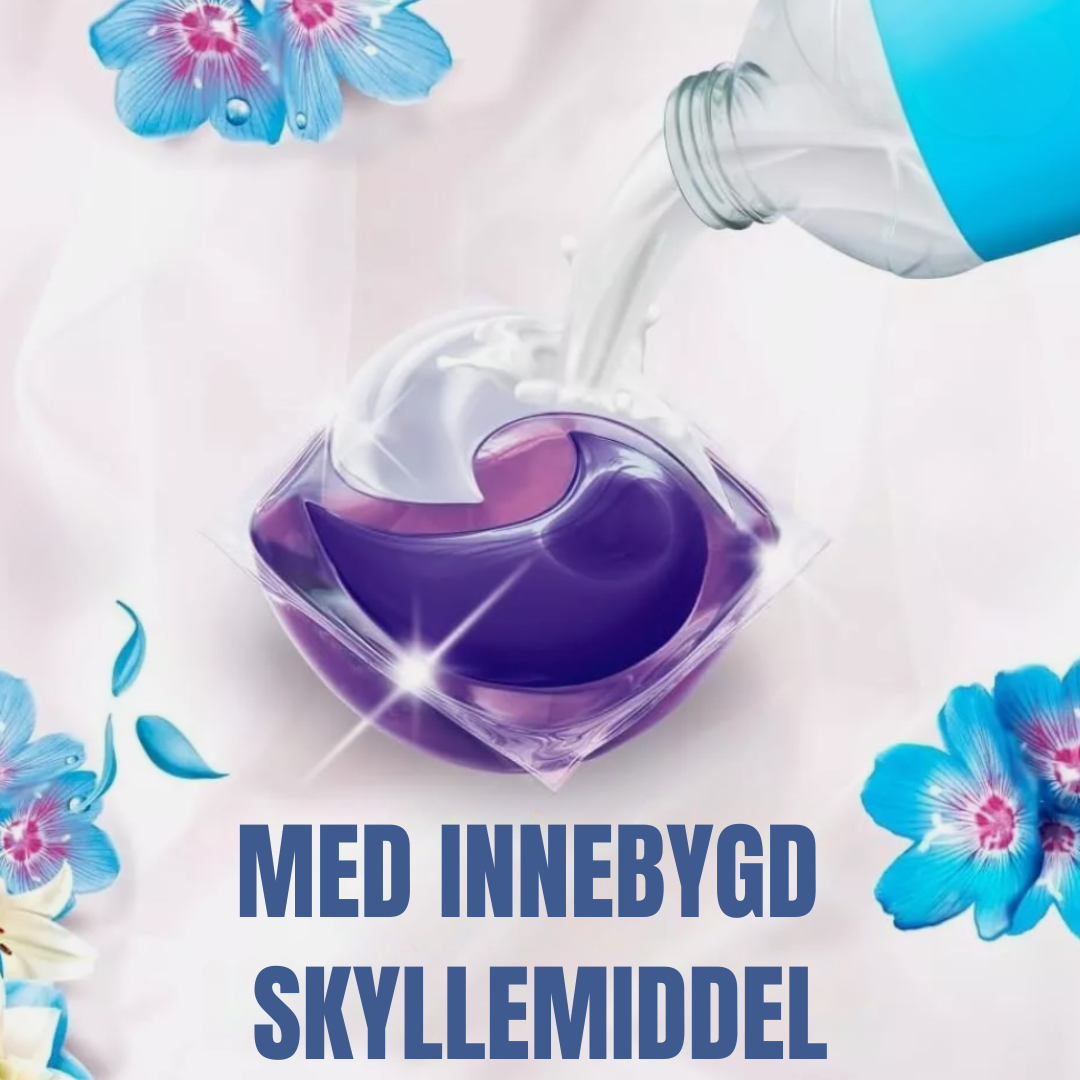 Hver kapsel har en flerekammersformel som frigjør vaskemiddel, flekkfjerner og tøymykner i perfekt balanse under vasken. Resultatet er strålende rene klær, en myk følelse og en langvarig, ren duft som minner om frisk luft og blomstrende enger.