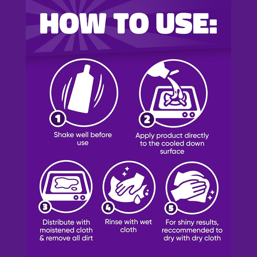 Cillit Bang Hob Cleaner er en skånsom og effektiv rengjøringskrem utviklet spesielt for induksjonstopper, keramiske kokeplater og elektriske overflater. Den fjerner fastbrente matrester, fett og smuss uten å ripe overflaten, og etterlater platetoppen ren og blank med en frisk duft. Kremen gir et glansfullt resultat som gjør det enklere å holde koketoppen ren i hverdagen.