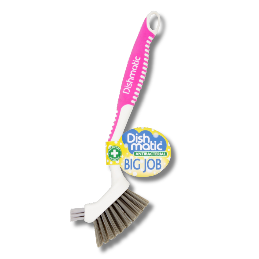 Dishmatic Big Job Brush er en kraftig oppvaskbørste utviklet for tøffe rengjøringsoppgaver på kjøkkenet. Den har slitesterke bust med et hygienisk belegg som bidrar til å hemme bakterievekst i busten, slik at børsten holder seg frisk og luktfri lenger.
