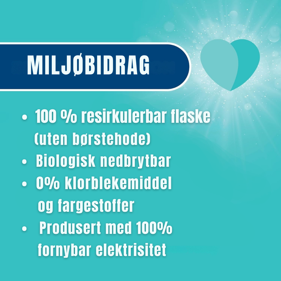 Inneholder anioniske og ikke-ioniske overflateaktive stoffer, parfyme, konserveringsmidler (Methylisothiazolinone, Benzisothiazolinone).