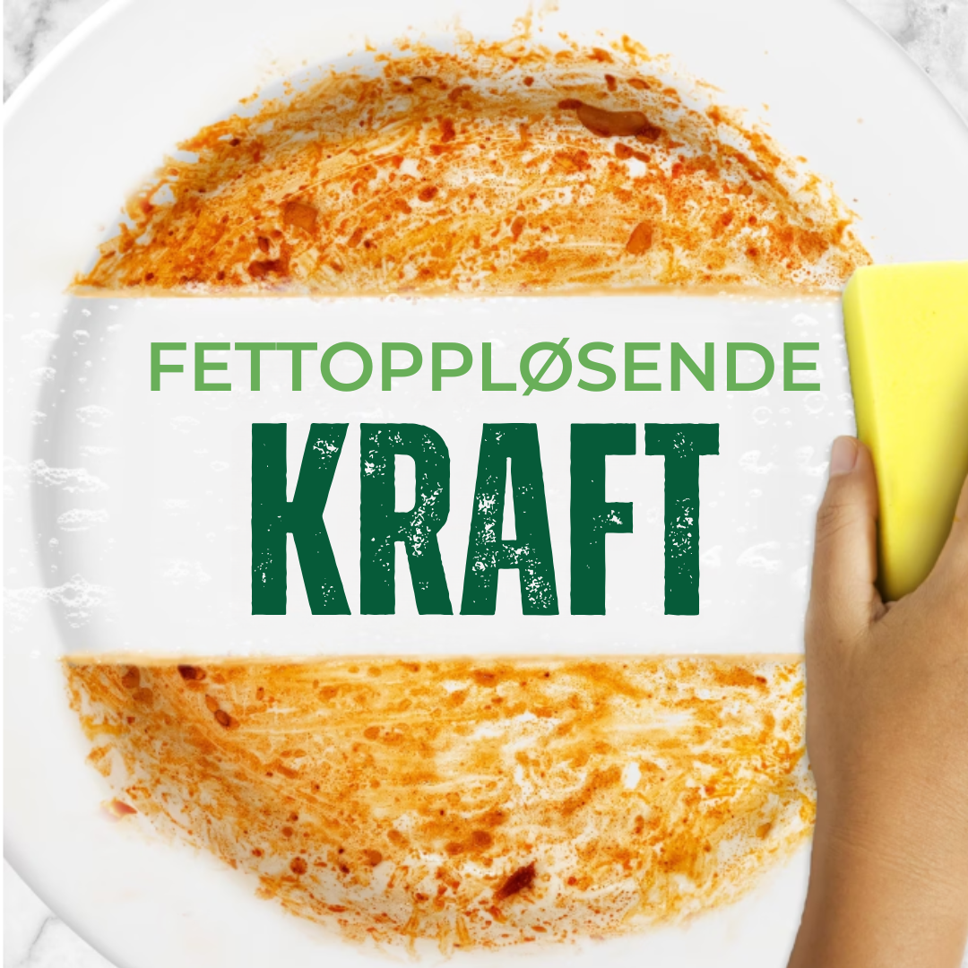 For svært fettete gryter og panner: bruk en ekstra dose, og la virke i noen minutter før skylling.
