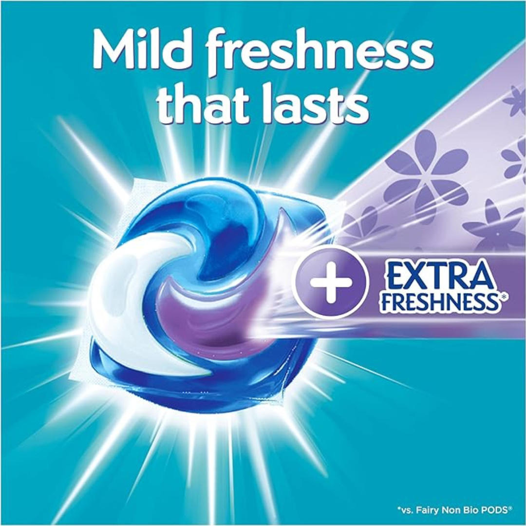Fairy Platinum Non Bio pods – Silk Tree Blossom & Jasmine gir ekstra friskhet og dyptvirkende rengjøring, samtidig som den er skånsom mot sensitiv hud.