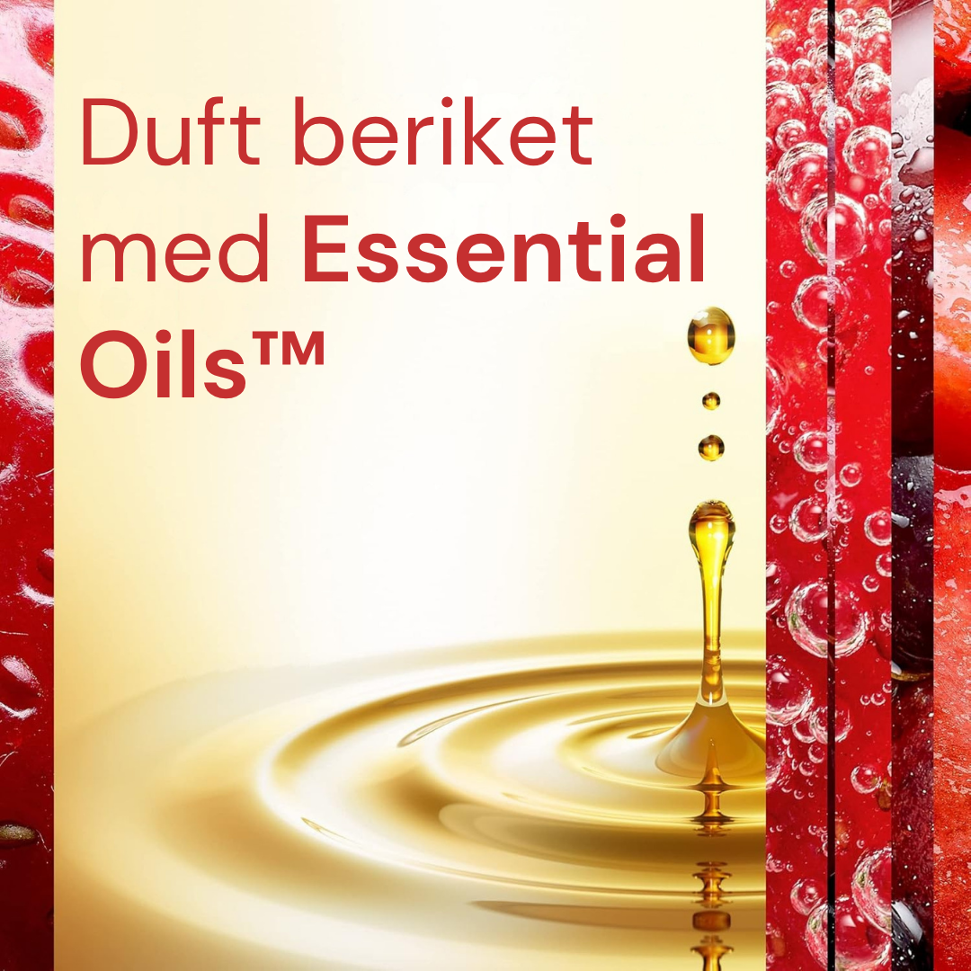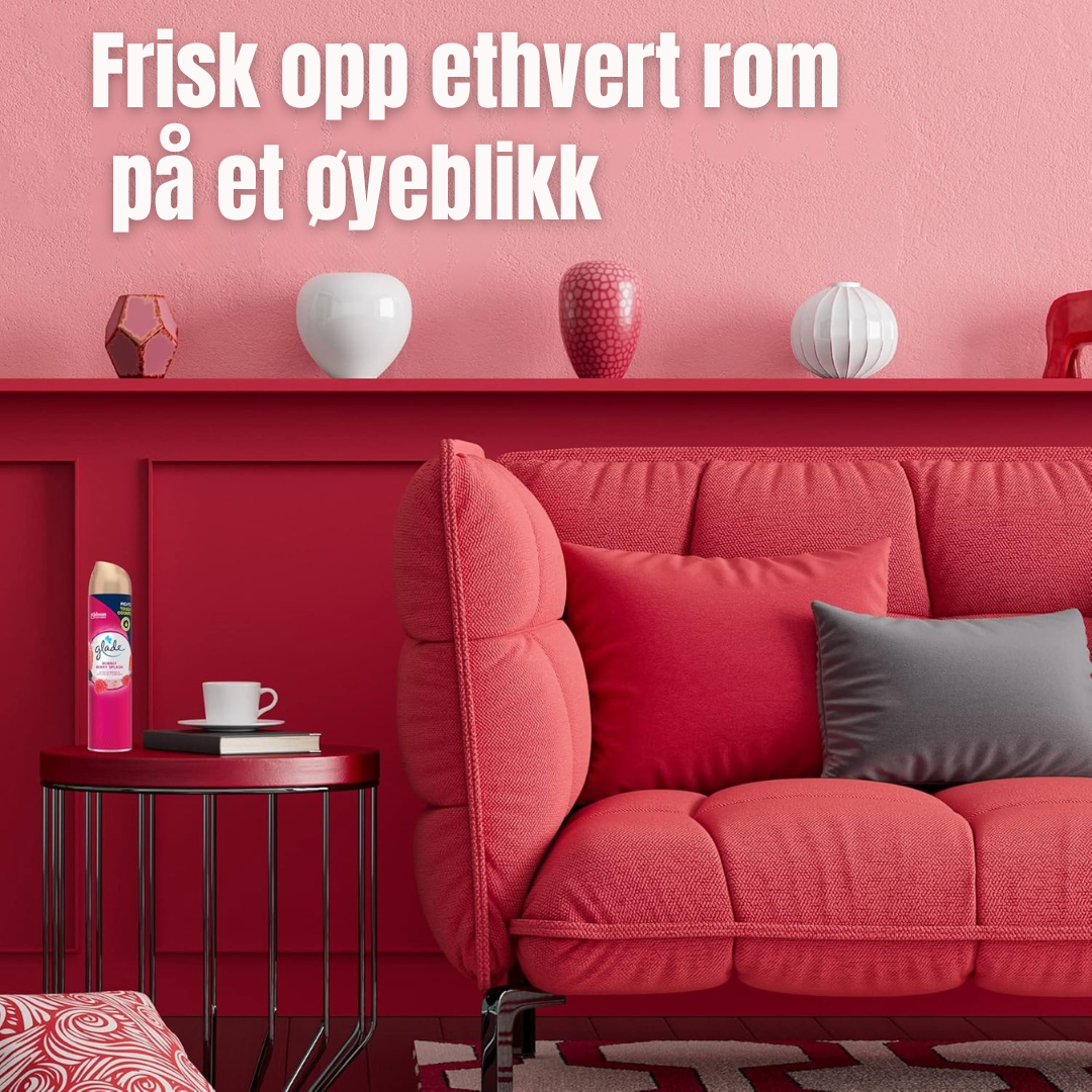 Glade Bubbly Berry Splash gir øyeblikkelig friskhet og fjerner vanskelige lukter med en livlig og fruktig duft av bringebær, bjørnebær og et hint av champagne. En morsom og energisk romspray som gir hjemmet en frisk og oppkvikkende atmosfære.