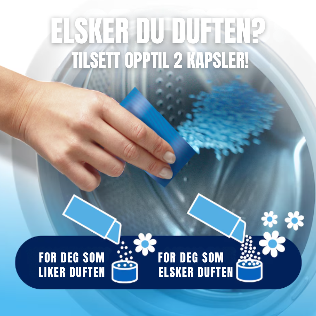 Produktet gir en følelse av langvarig friskhet som varer opptil 12 uker i skapet, slik at klærne alltid føles nydelig rene og velduftende.