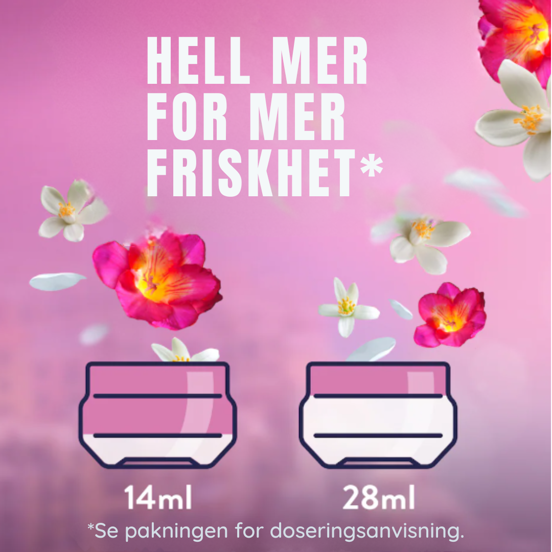 Den ultrakonsentrerte formelen gir langvarig friskhet og silkemyk mykhet – og du trenger bare 14 ml per vask for samme resultat som en vanlig tøymykner.
