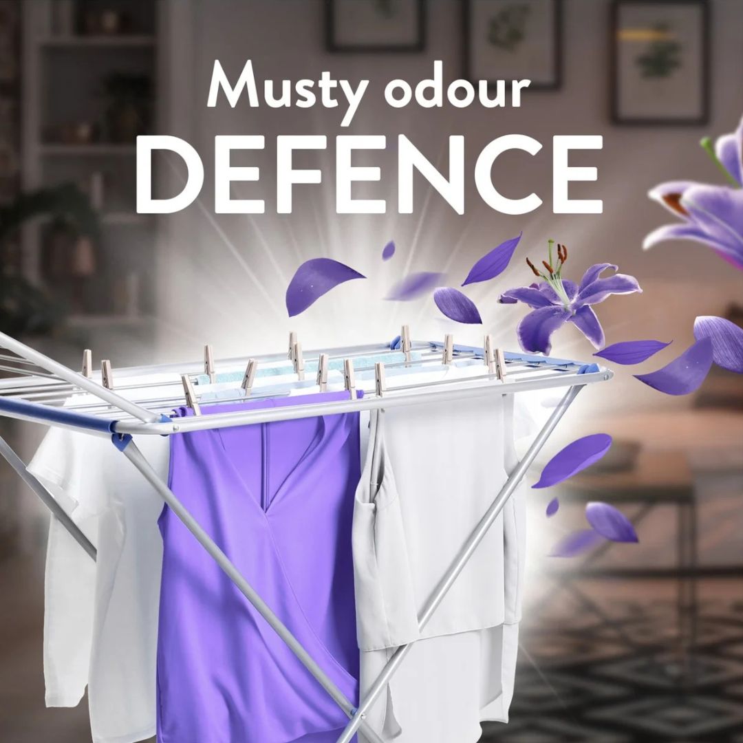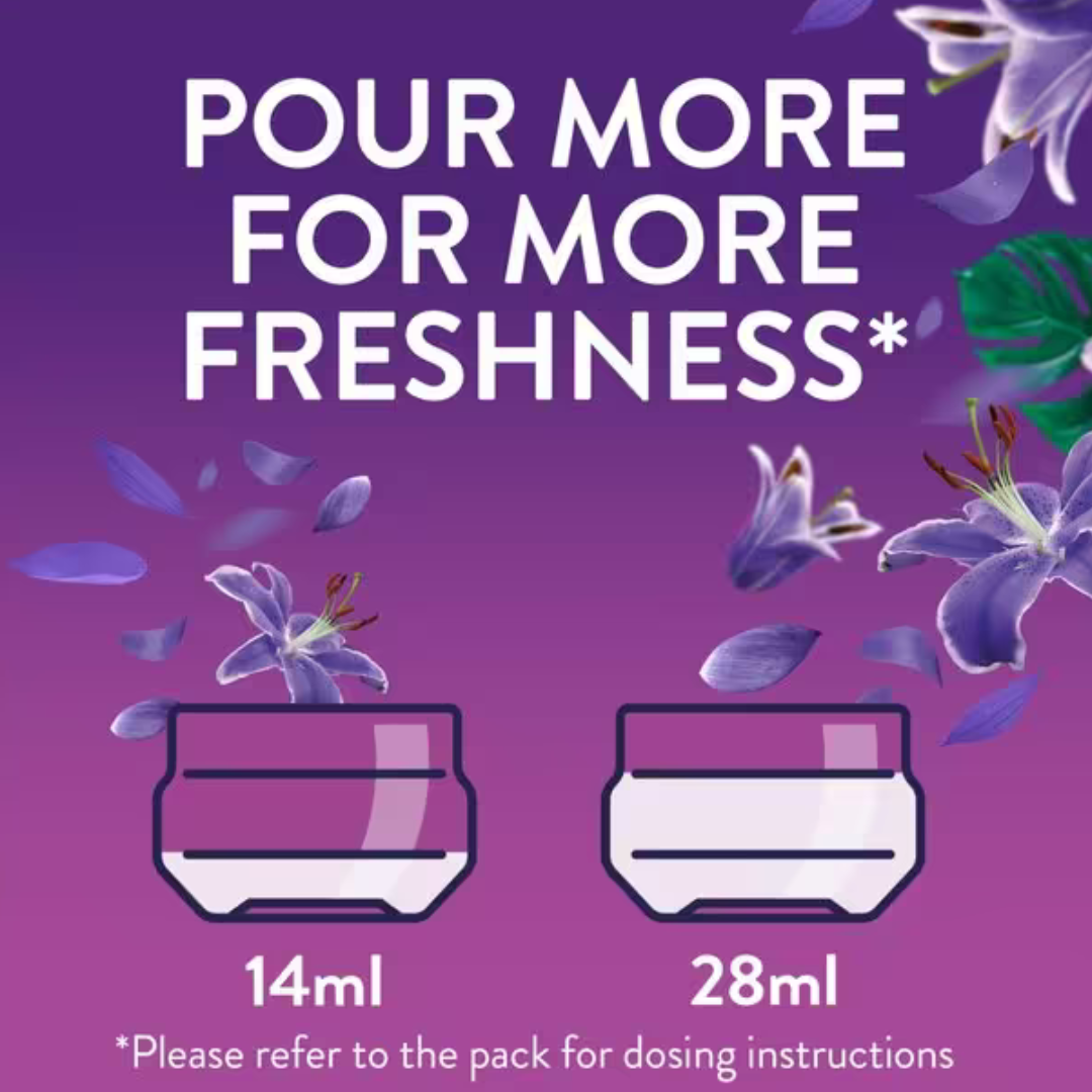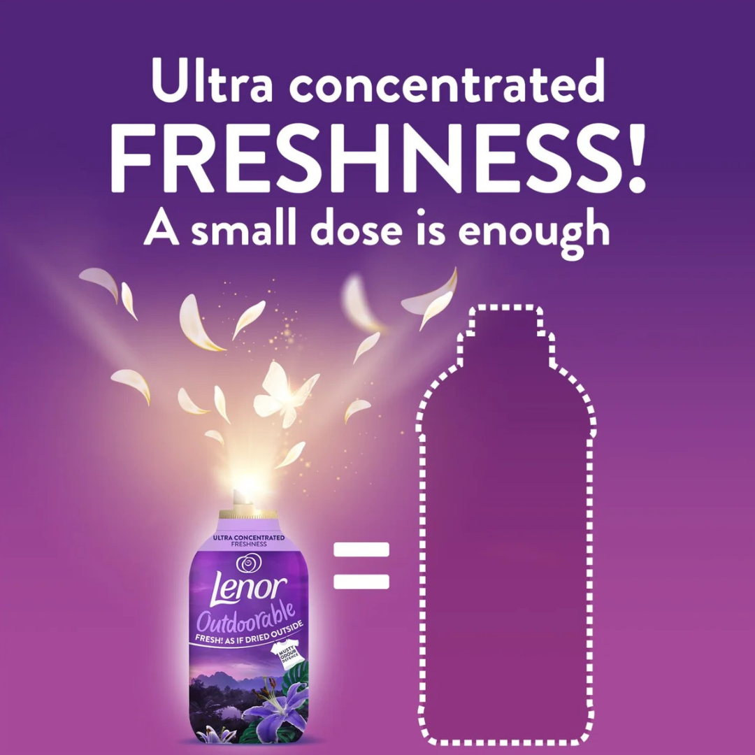 Opplev følelsen av nyvasket tøy som om det er tørket ute i frisk kveldsbris – uansett vær og årstid. Lenor Outdoorable Moonlight Lily gir klærne en luksuriøs, langvarig friskhet og en silkemyk følelse, selv når tøyet tørkes innendørs. Den ultrakonsentrerte formelen gjør at en liten dose er nok for fantastiske resultater, vask etter vask. Perfekt for deg som vil ha myke klær, elegant duft og følelsen av utendørstørket tøy – hele året.