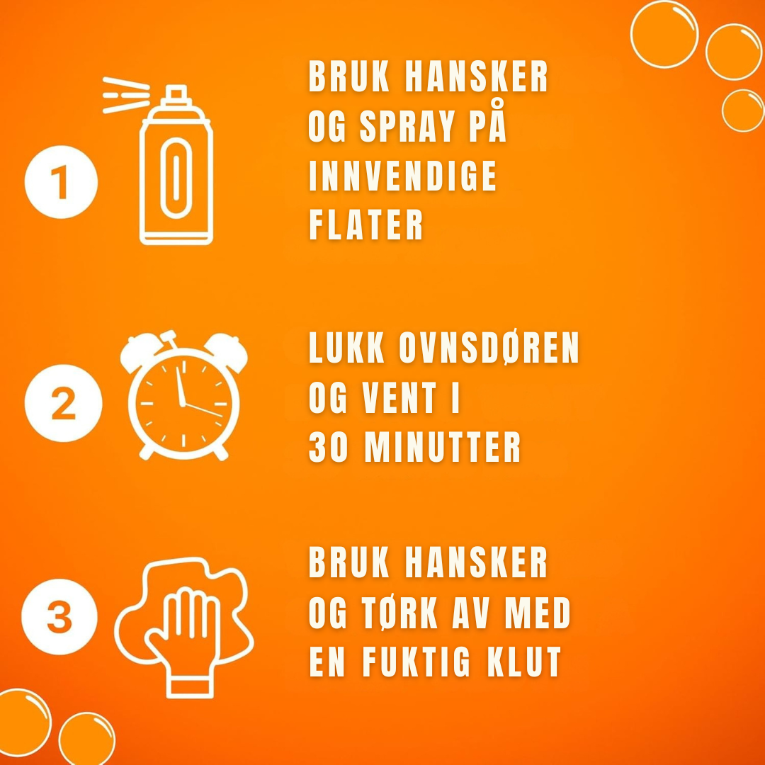 Perfekt for rengjøring av stekeovn, grillrist, ovnsdør og bakeplater. Etter bruk etterlates overflatene rene, blanke og fettfrie – uten sterk lukt.