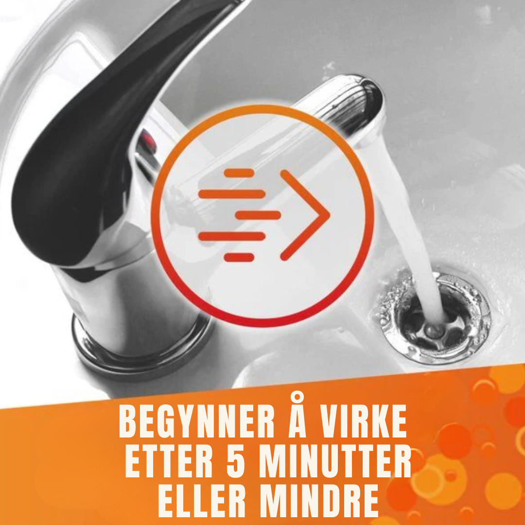 Viktig: Ikke bruk produktet hvis det står vann i vasken, og ikke bruk i toaletter. Må ikke blandes med andre rengjøringsmidler.