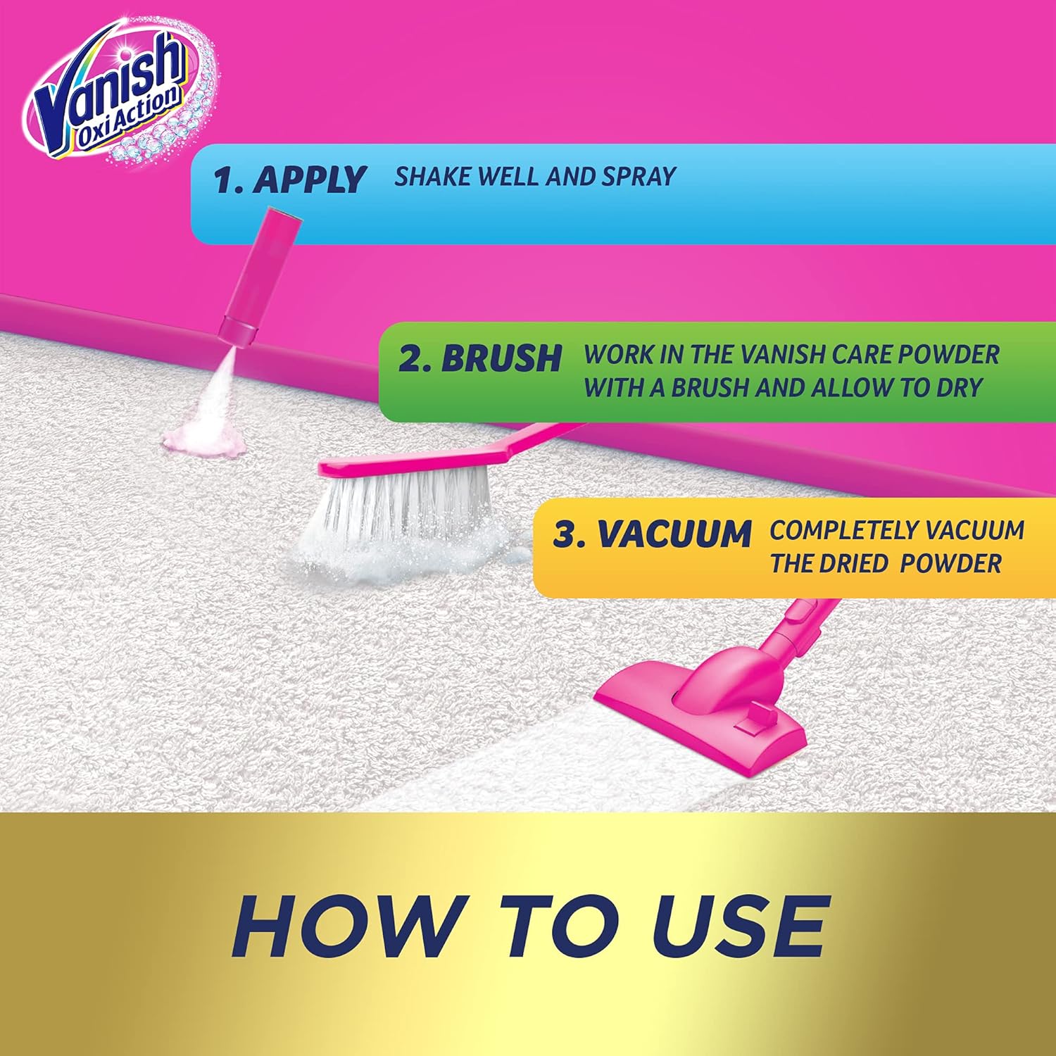Vanish Carpet Power Foam er et dyprensende tepperenseprodukt i aerosolform, utviklet for effektiv fjerning av smuss, lukt og inngrodd skitt i tepper og møbeltrekk. Det aktive skummet trenger dypt ned i fibrene og løfter ut smuss som vanlig støvsuging ikke fjerner. Egner seg spesielt godt til områder med høy slitasje som ganger, trapper og inngangspartier, og bidrar til et renere og friskere resultat mellom grundige rengjøringer.