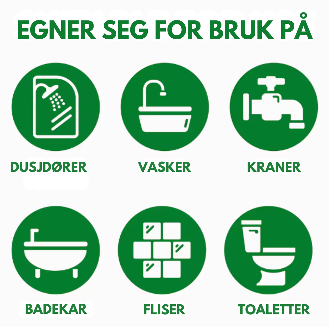 Passer til vasker, badekar, dusjer, fliser, kraner og toaletter.